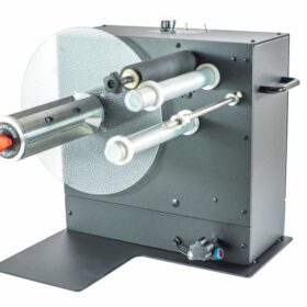 Obsługuje etykiety do 255 mm szerokości, nawijając je na rolkę do 300 mm szerokości z prędkością do 125 cm/s.