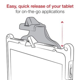 Sprężynowa stacja GDS Type-C Vehicle Dock z szybkim zwalnianiem jest wyposażona w zamek na klucz, który zapewnia bezpieczne dopasowanie i łatwy dostęp do zamontowanego tabletu.