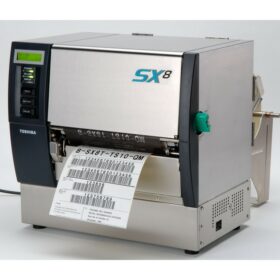Toshiba B-SX8T to drukarka przemysłowa umożliwiająca wydruk etykiet do 213 mm szerokości.