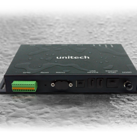 Unitech RS804 to 4-portowy stały czytnik RFID UHF do zastosowań IoT. Wyposażony jest w szeroki zakres mocy wejściowych, interfejsy USB, RS232, RJ45 i 4 GPIO.