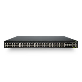 48 portów 1 GbE RJ45 + 6 uplinków 10 GbE SFP+, z obsługą PoE+. Idealny dla dużych wdrożeń w warstwie dostępowej, gdy trzeba zasilać wiele kamer IP, punktów Wi-Fi lub telefonów VoIP.
